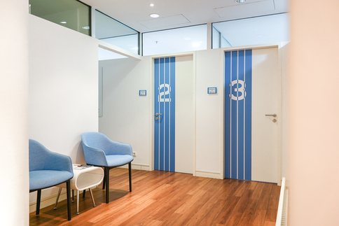 Moderne und elegante Beschriftung für die neuen Praxisräumen und dem Wartezimmer unter Einbindung des Corporate Designs